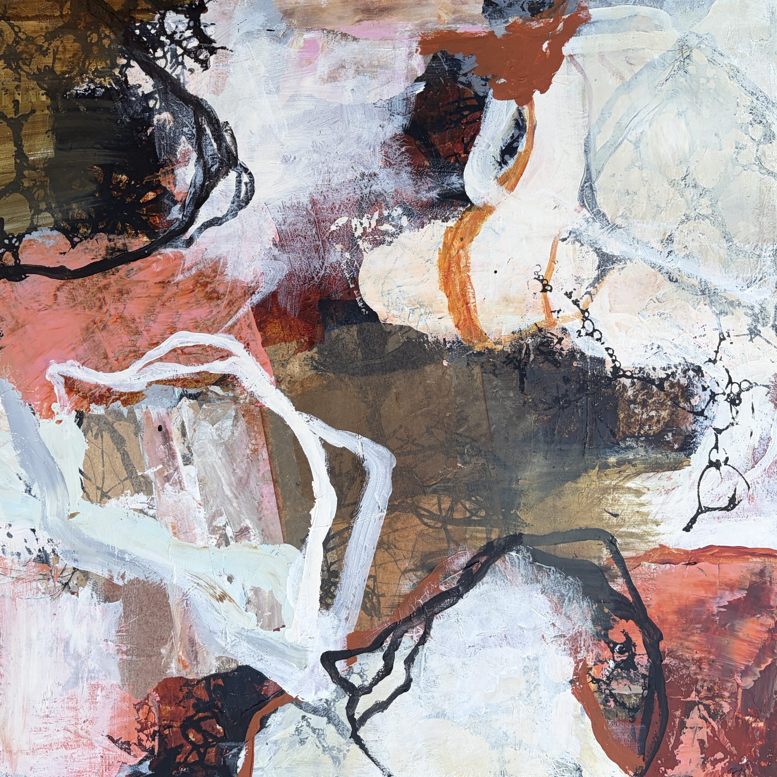 Mine abstrakte malerier er malet med akrylmaling, inspireret af naturens former, mønstre og strukturer. Jeg arbejder i mange lag og eksperimenterer med farver og forskellige teknikker og redskaber. Ofte kan de vende både vandret og på højkant.