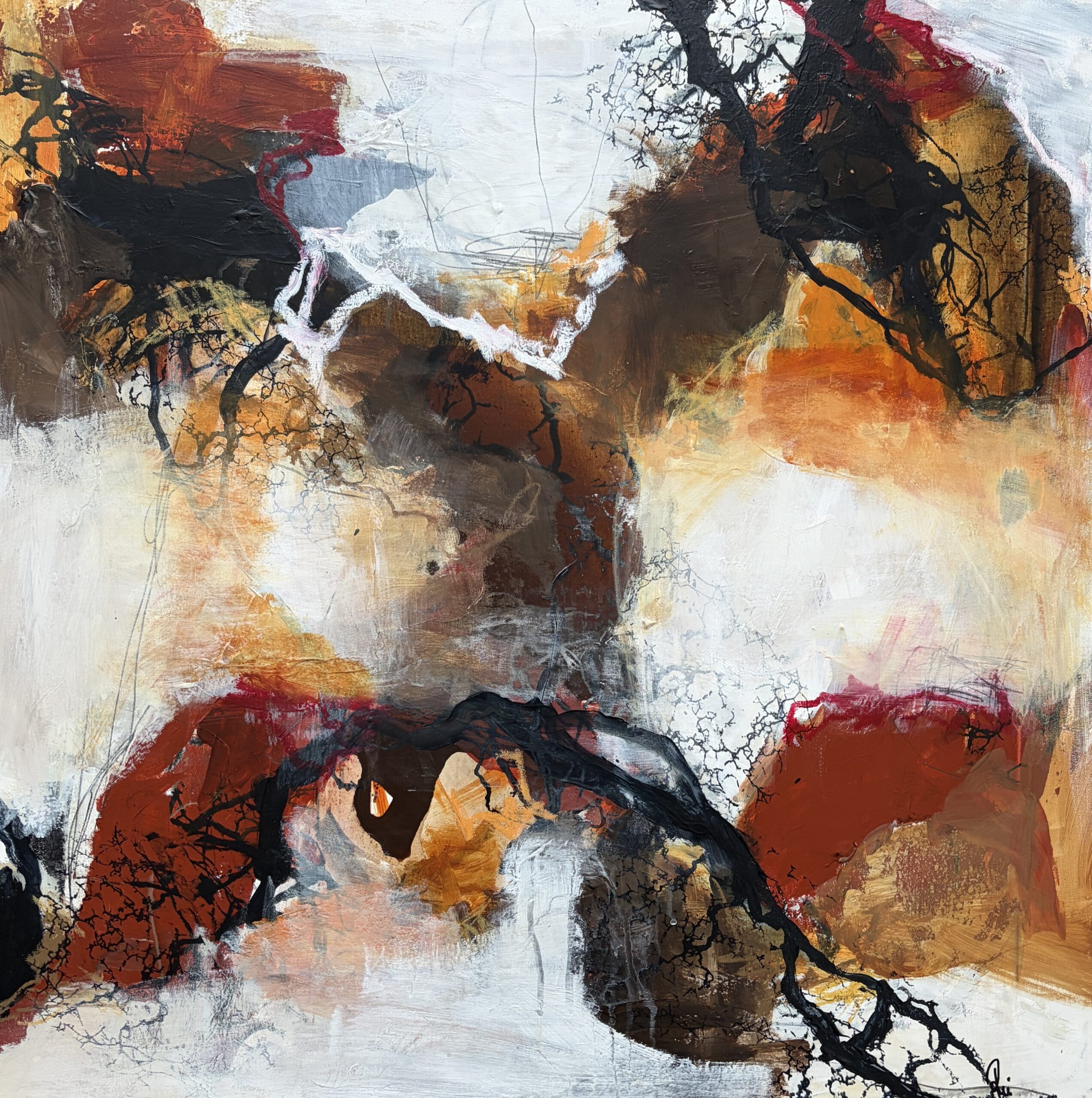 Abstrakt maleri i varme farver 80 x 80