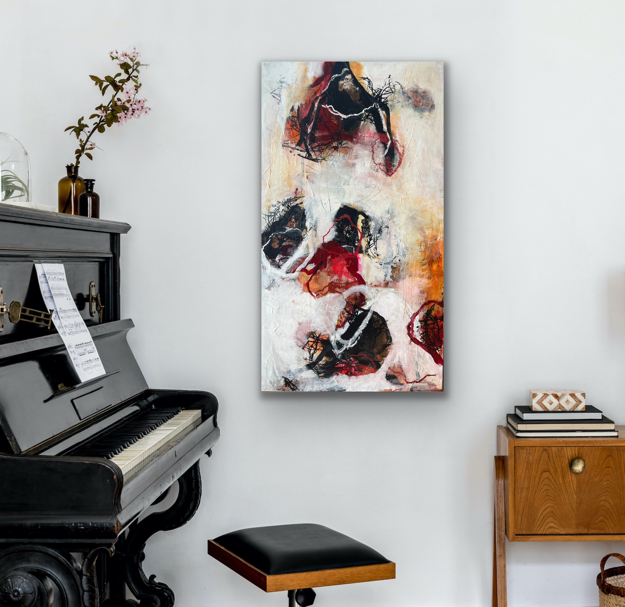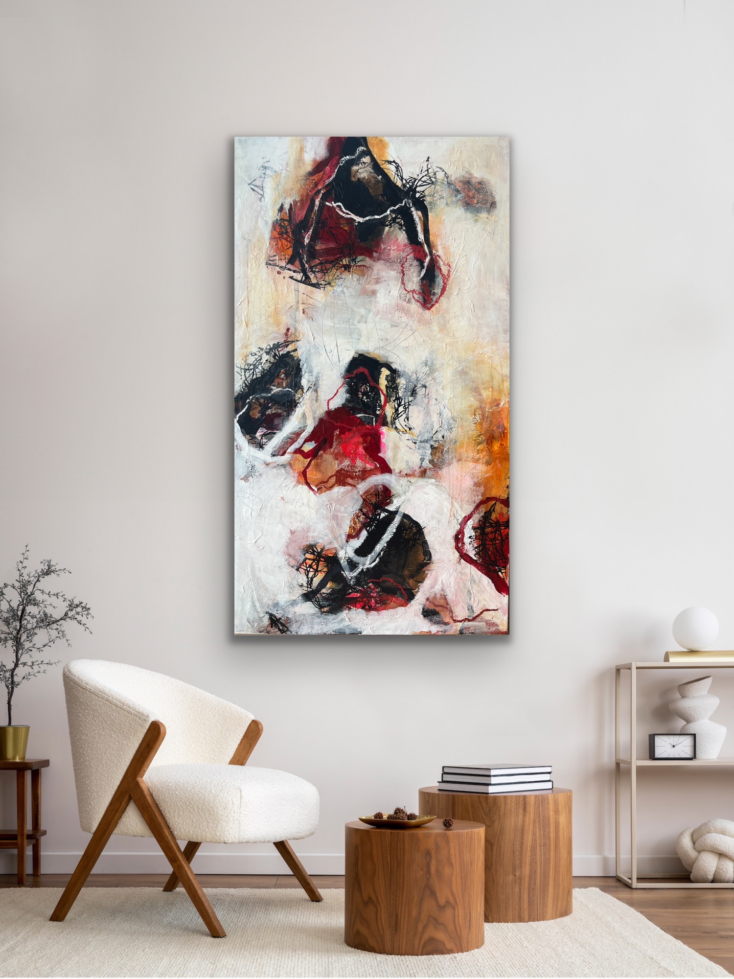 Abstrakt akrylmaleri 80 x 140 kan også vendes vandret.