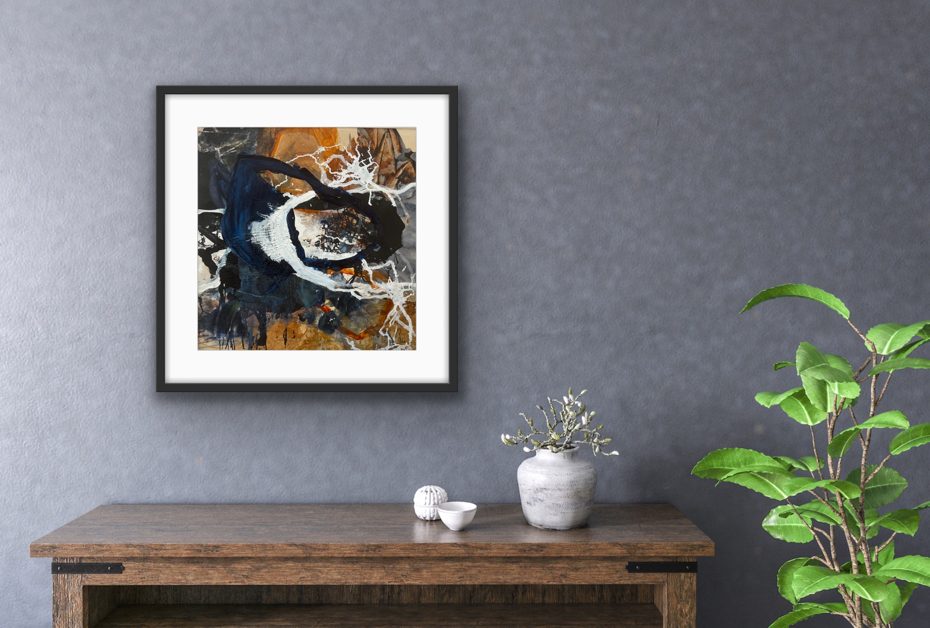 Collage med passpartout og sort træramme 50 x 50