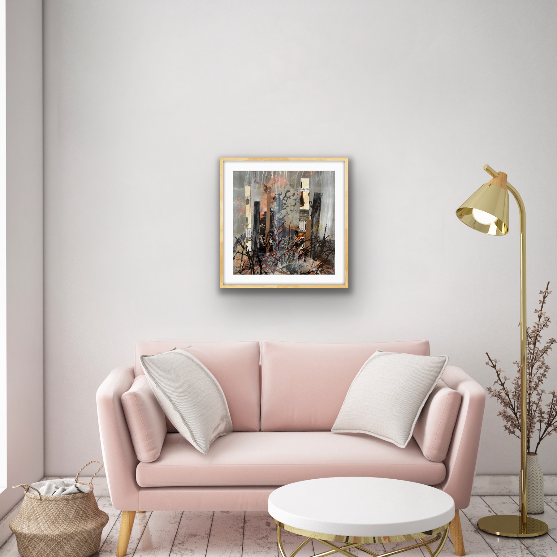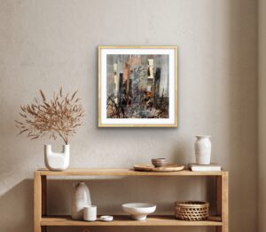 Collage med passpartout og ramme. 50 x 50