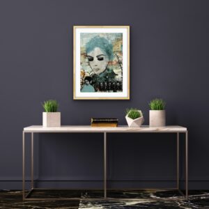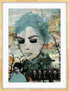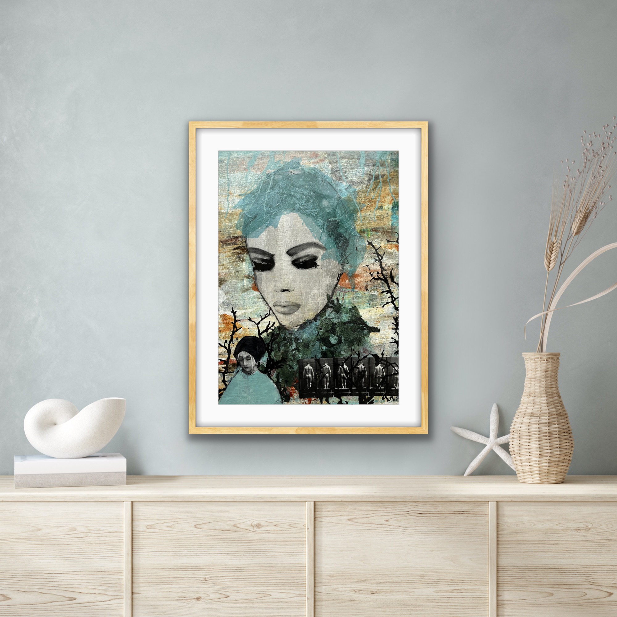Collage 40 x 50 med passpartout og egetræsramme.